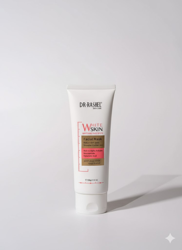The Dr. Rashel Skin Care White Skin Whitening Fade Spot Facial Mask is a specialized facial treatment designed to provide deep exfoliation while helping to reduce dark spots, melanin, and uneven skin tone. Here’s a detailed description of what the product does: